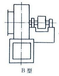 適用于雙吸或大型單吸且轉(zhuǎn)速與電動機轉(zhuǎn)速相同的離心通風機,起優(yōu)點是運轉(zhuǎn)比較平穩(wěn)。