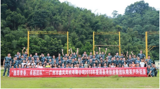 為了激發(fā)團(tuán)隊(duì)斗志,提高團(tuán)隊(duì)協(xié)作能力,2018年8月5-6日,“激昂青春,卓越團(tuán)隊(duì)”廣州市鑫風(fēng)風(fēng)機(jī)有限公司2018年度旅游暨團(tuán)隊(duì)精英戶外拓展在清遠(yuǎn)清泉灣順利開展。