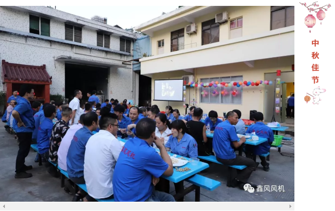 2019年9月10日,在這個(gè)象征長長久久的日子里,鑫風(fēng)風(fēng)機(jī)全體家人歡聚一堂,共度佳節(jié),歡慶這美好的中秋之夜。