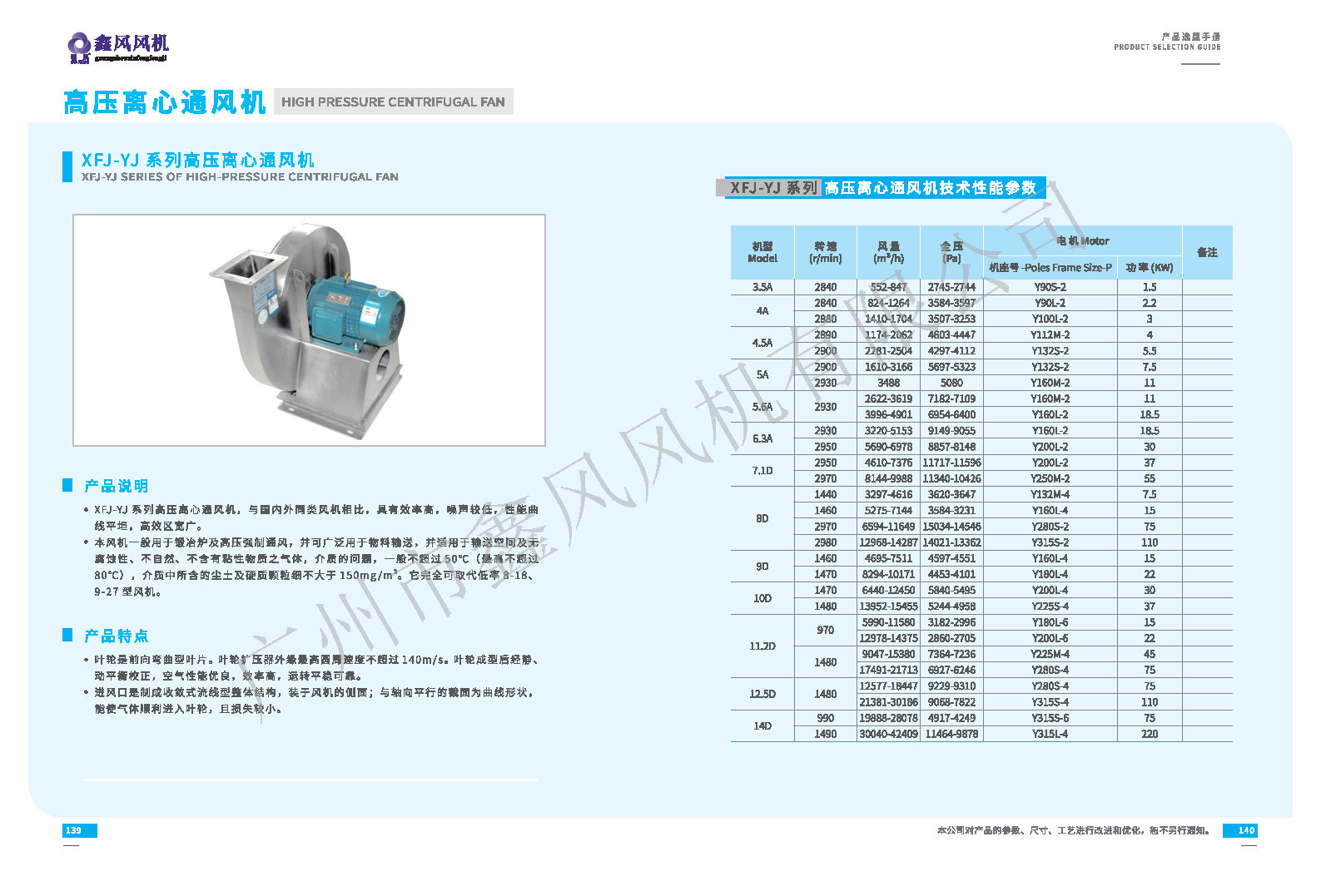 介紹:XFJ-YJ系列高壓離心風機可取代舊式的8-18型離心風機、9-27型離心風。